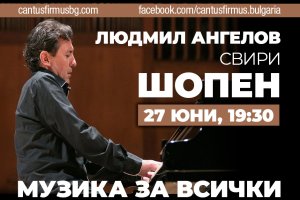 По случай рождения ден на забележителния наш пианист Людмил Ангелов, точно на 27 юни (събота) на Facebook страницата на „Кантус Фирмус“ ще бъде излъчен негов концерт с музика от Шопен. Изпълненията са част от интеграла „Людмил Ангелов свири Шопен“, реализиран през 2010 година по повод 200 годишнината на Фридерик Шопен. Излъчването ще започне в 19:30 ч., а в програмата са включени следните произведения: