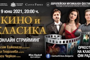 „Европейски музикален фестивал“ 2021 представя дигитално събитие за почитателите на класическата и филмовата музика. Днес, 9 юни от 20:00 ч. на Facebook страницата на „Кантус Фирмус“ предстои премиера на видеозапис от концерта „Кино и класика“, състоял се през м. октомври 2020. Атрактивната програма, съпроводена от мултимедия, презентира виртуозни класически творби и любими филмови хитове в изпълнение на блестящите солисти Мила Георгиева (цигулка) и Георги Черкин (пиано), които си партнират с Оркестъра на Класик ФМ радио и диригента Максим Ешкенази. Видеото представя творби от К. Сен-Санс, П. И. Чайковски, А. Пиацола, М. Местре, а също популярна музика от големия екран в аранжименти на Георги Черкин. Специално за събитието м.г. бяха подготвени нови оркестрации на теми от „Междузвездни войни“, а в програмата присъстват още прекрасните мелодии от „Хари Потър“, „Карибски пирати“, „Усещане за жена“, които също са се превърнали в класика. Мултимедията за концерта е дело на популярния актьор и режисьор Иван Юруков. Концертът е със специалното участие на мецосопраното Гергана Николаева, която изпълнява Adagio от Албинони – версия за глас, пиано и оркестър, също създадена от Георги Черкин.