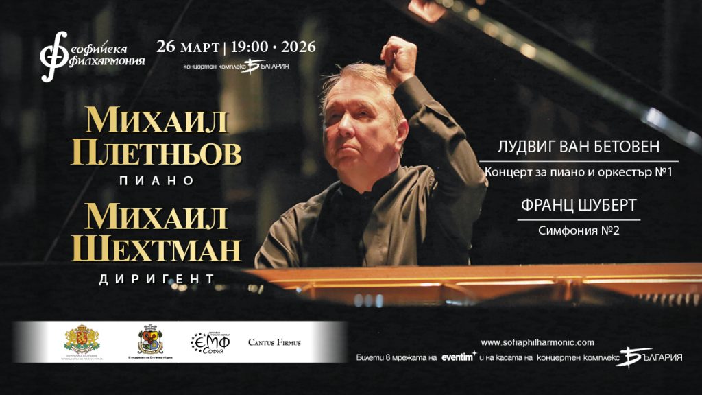 На 26 март 2026 г. 19:00 ч. в зала „България“ предстои откриването на авторитетния столичен форум за класическа музика „Европейски музикален фестивал“, който тази година се провежда за 26-ти път.  Домакин на тържествената вечер ще бъде оркестърът на Софийската филхармония с гост-солист феноменалният руски пианист Михаил Плетньов. На пулта ще застане маестро Михаил Шехтман, един от изгряващите млади диригенти на световната сцена, победител от Международния конкурс „Ференц Фричай“ през 2025 г. Програмата на концерта обединява произведения от Бетовен и Шуберт, носещи светлината и енергията на виенския класицизъм.